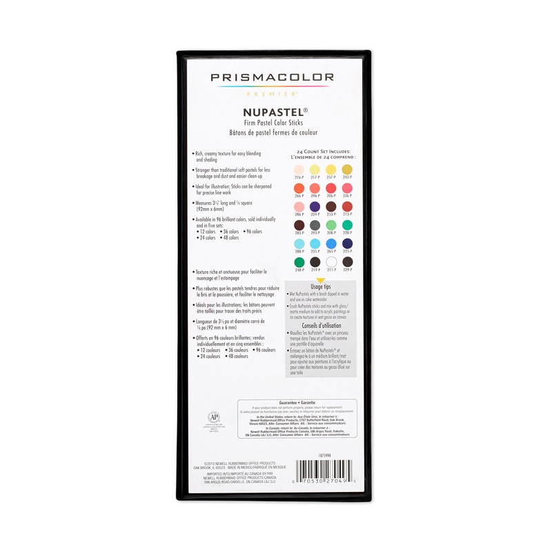 Tougher than traditional pastels yet supple, Prismacolor Premier NuPastel Firm Pastel Sticks resist breaking but maintain the same rich, creamy texture needed for blending and shading. That means you enjoy 24 vividly smooth shades with less powdery mess than traditional pastels. Perfect for creating illustrations or tightly rendered drawings, the pastels can be dulled for full coverage or sharpened to a fine point. For use both wet and dry, you can create decadent layers and shimmering effects.