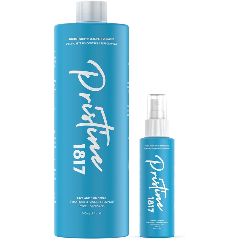 Pristine 1817 Hypochlorous Acid Spray 0.016% - Gentle, Versatile Mist for Face & Body (16.9 fl oz + 2 fl oz)