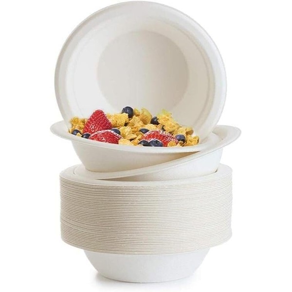 PRISTINE ENTERPRISE PAPER BOWLS PACK of 50 BIODEGRADABLE DISPOSABLE White 12oz/340m Bagasse Compostable Bowls Eco-Friendly for Party Picnic Bbq