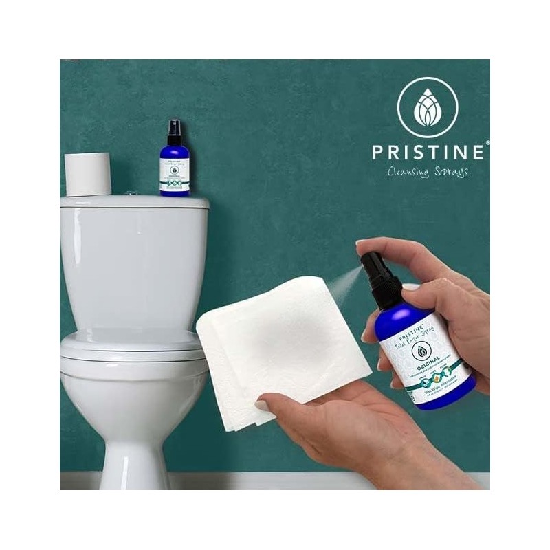 - [Flushable Wet Wipe Alternative]: Spray Pristine toilet paper spray 3-5 times onto folded toilet paper to create an instant flushable wet wipe that is free of harsh ingredients.