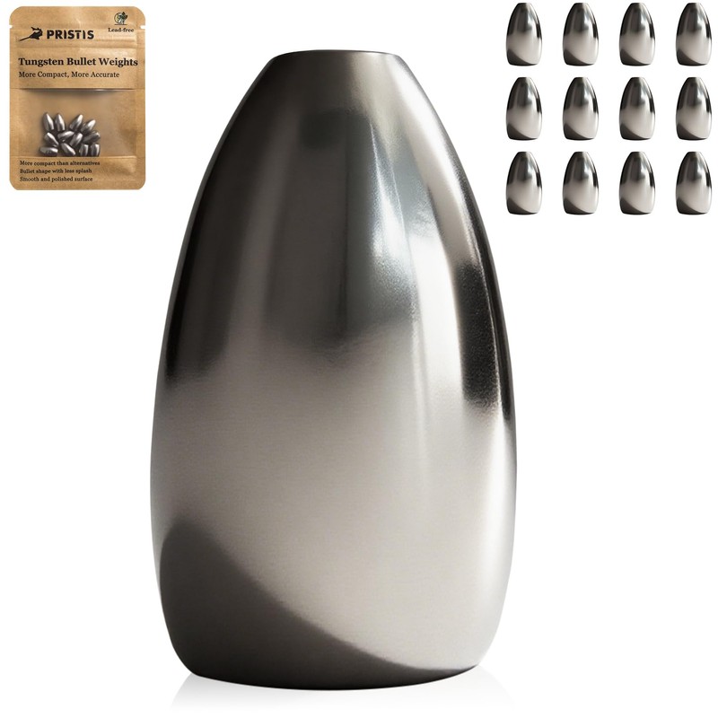 Pristis 12 pcs 3/16 oz Tungsten Fishing Weights, Compact Bullet Sinkers Kit for Fishing line, Drop Shot Texas Carolina Rig Hook Weight for Bass Walleye Perch Trout Crappie Bait