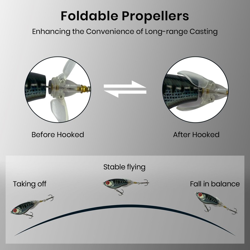 - Foldable Double Propellers: The specially designed double-blade lure gets folding propellers which can automatically close when casting to reduce the air drag and will open when swimming to create huge blowup for bass, pike, crappie, perch, muskie