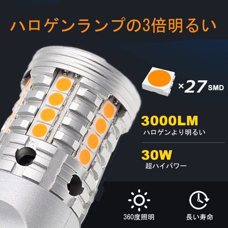Genuine amber, headlight grade LED bulbs, 3,000 lm super bright Taiwan Zyo 3030S chips.
