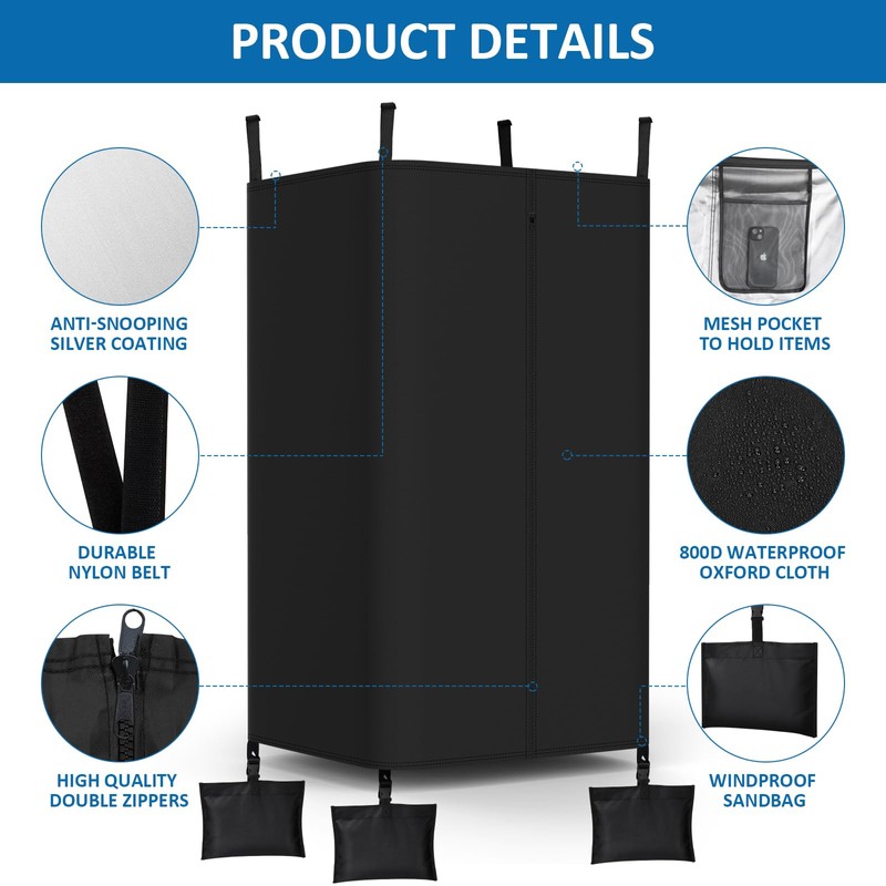 - Upgraded Windproof Design: Our boat privacy changing room comes with 4 windproof sandbags, fill the sandbags with sand and fix them to the buckle straps at the bottom to keep them stable even on windy days