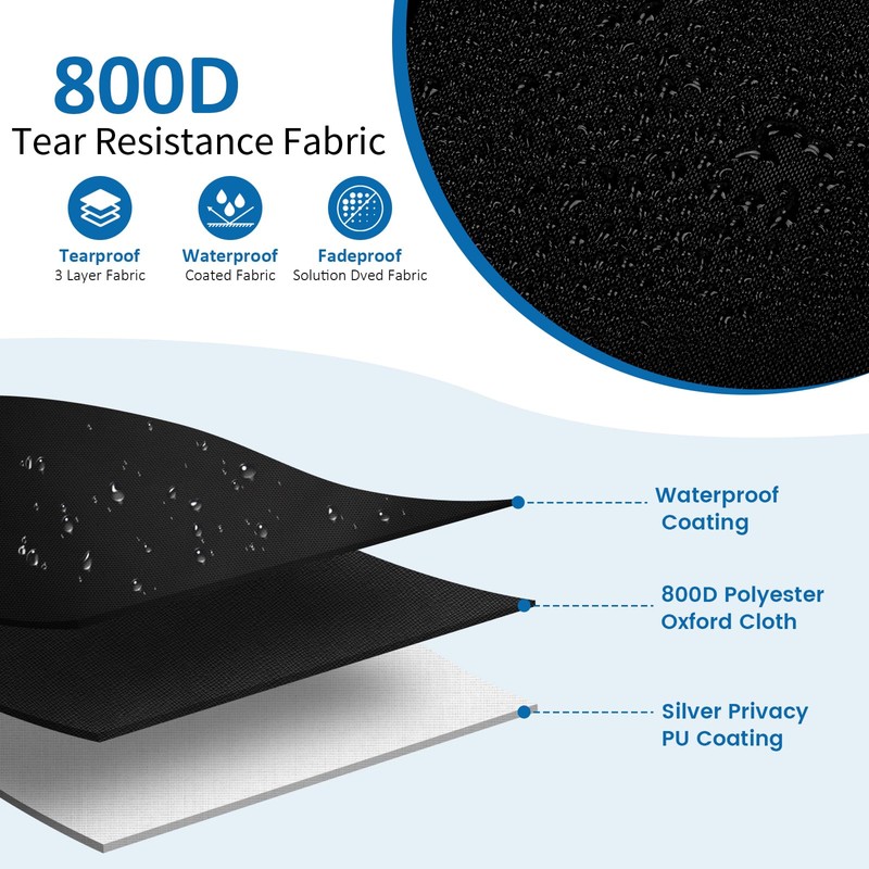 3.Made from 800D polyester, it is not only waterproof but the black fabric gives you plenty of privacy.