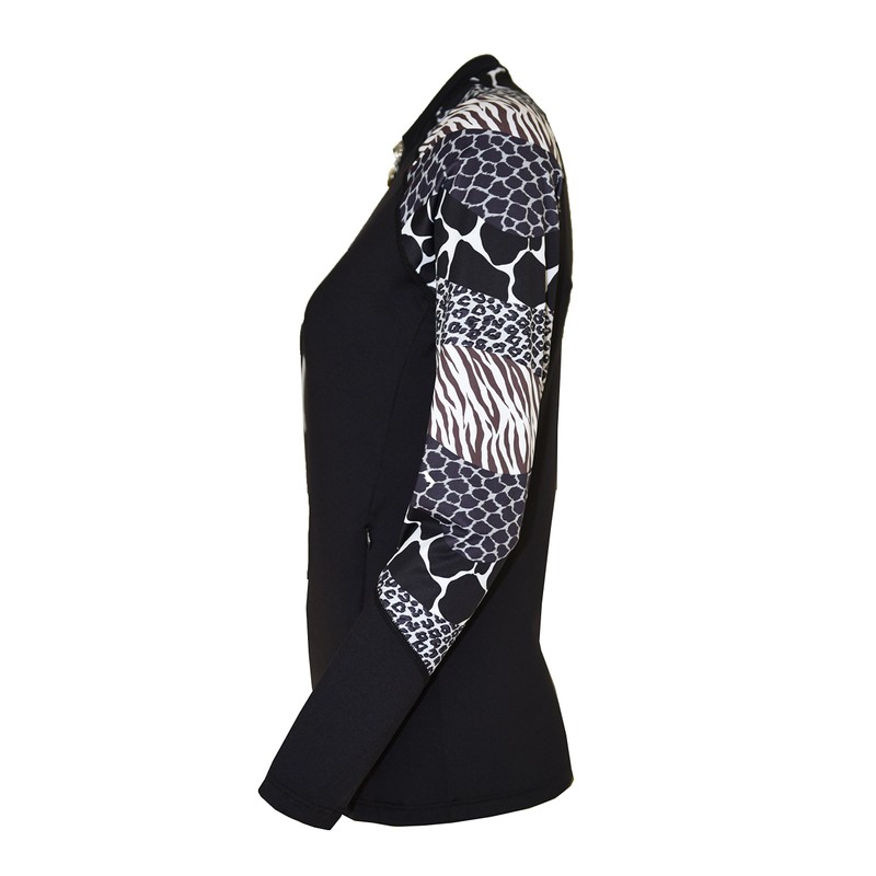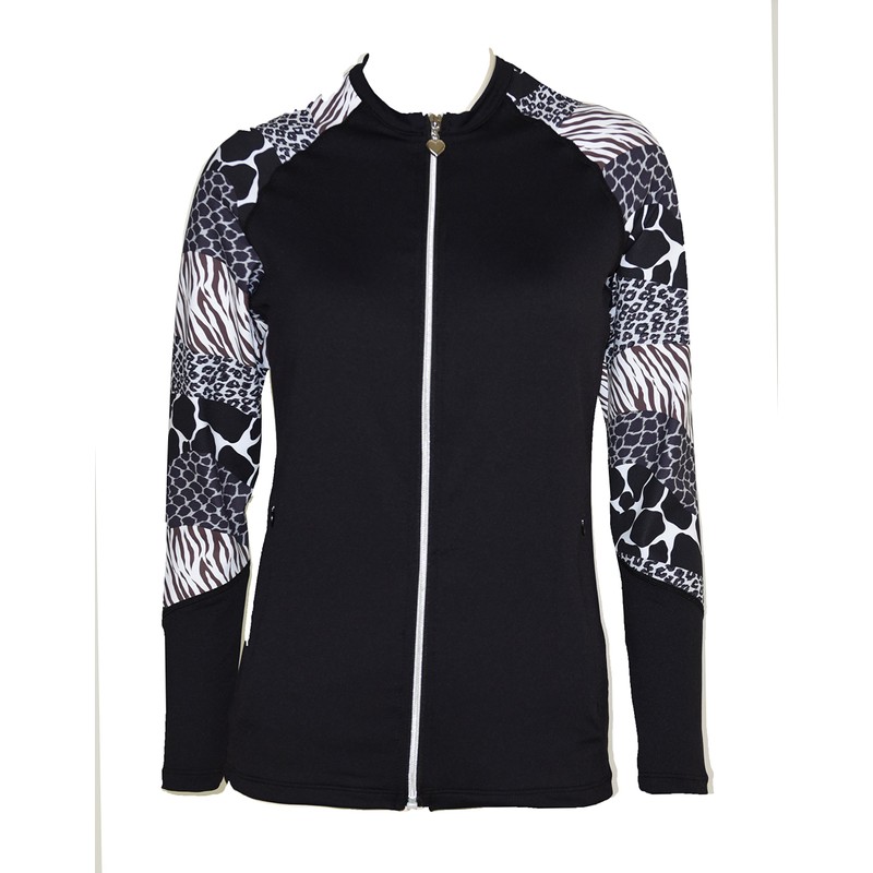 Private Island Women UPF50+ Front Zipper Up Long Sleeve Swimsuits Top with Both Side Pockets Swim Rash Guard (L, BWA-JRSRGT)