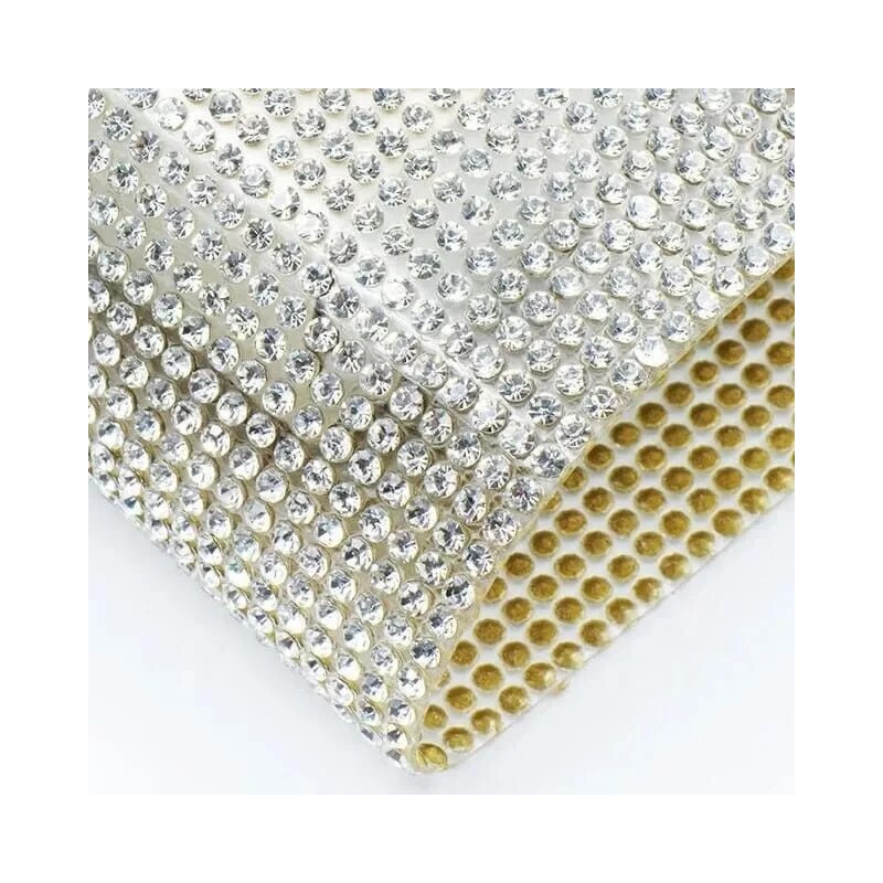 Hotfix rhinestones sheet with hot melt adhesive bottom. Press on or iron on from the back of the mesh. You can also add glue. Very easy to use just cut to size and press.