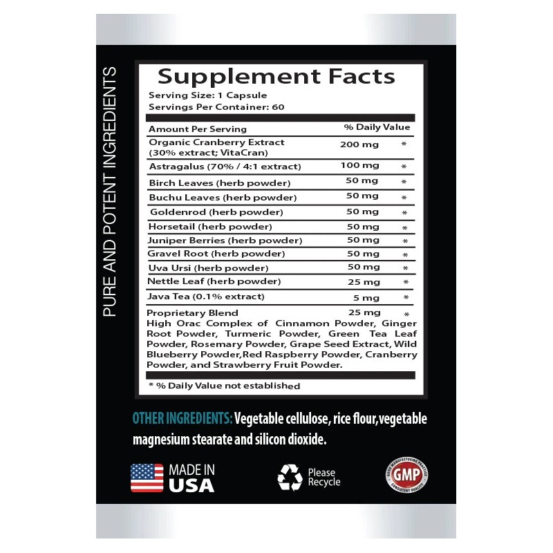 - Active Ingredients: American Cranberry (Vaccinium macrocarpon)