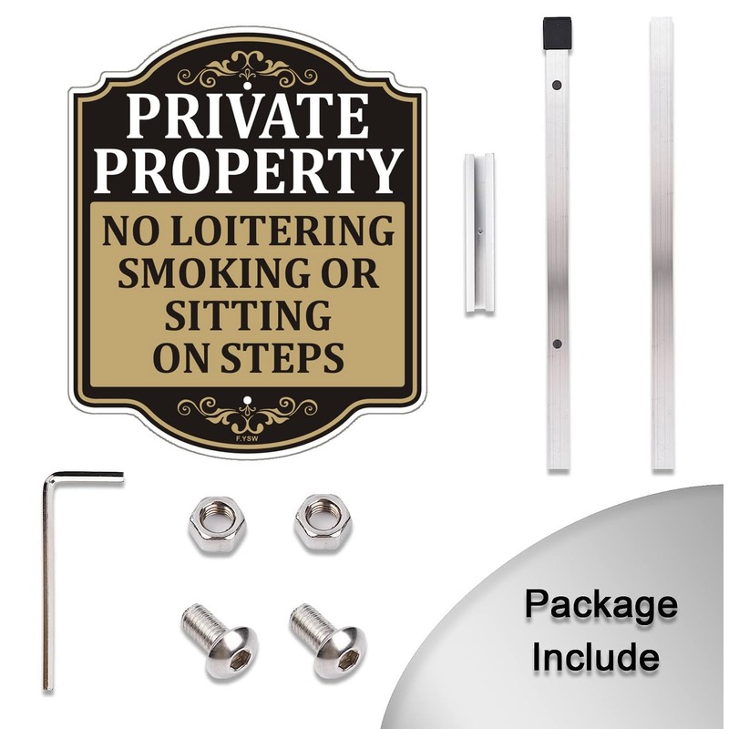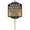Private Property No Loitering Smoking Or Sitting On Steps Sign 12" x 10" With 35" Long Metal Stakes No Trespassing Soliciting Video Surveillance With Stand Aluminum Outdoor Use Yard Home Business