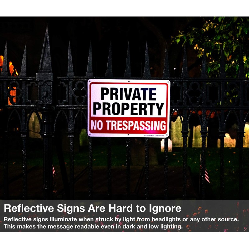 - Highly visible red, black, and white design is sure "Private Property - No Trespassing Sign" to catch the attention of possible intruders