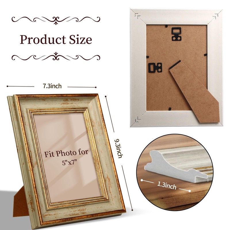 - Elegant Design for a Vintage Atmosphere: The picture frame features a green distressed finish with elegant gold accents, enhancing the vintage vibe of any space. Whether displayed on a wall or a tabletop, it adds a touch of sophistication and creates a charming retro ambiance. It's an ideal choice for elevating home decor