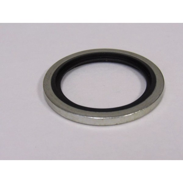 Synthetic rubber seal is permanently affixed to a plated steel retaining washer for high-pressure hydraulic service, providing a one-piece alternative to the O-ring and retaining washer combination offered with many parallel-thread male fittings.