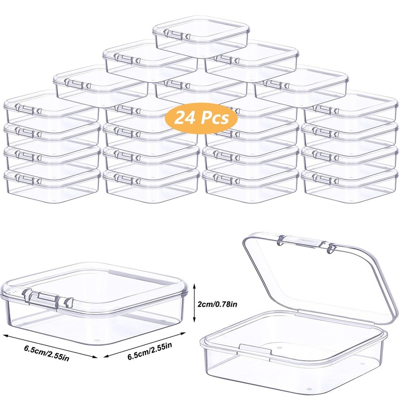Prmape Pack of 24 Storage Boxes with Lid, Small, 6.5 x 6.5 x 2 cm, Rectangular Empty Mini Storage Box, Small Clear Plastic Beads Storage Container Box for Craft Accessories