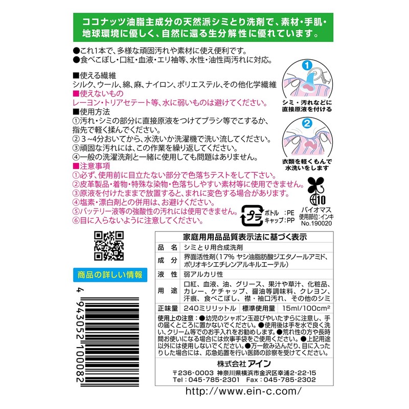 アイン ケミカル ザウトマン シミ取り用 液体洗剤 PRO 240ml