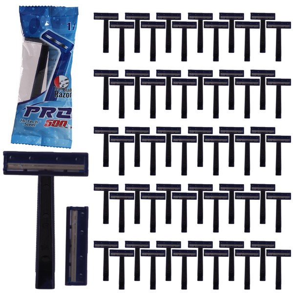 PRO 500 (60 Pack) Individually Hygienic Wrapped Twin Blades Disposable Razors,Unisex