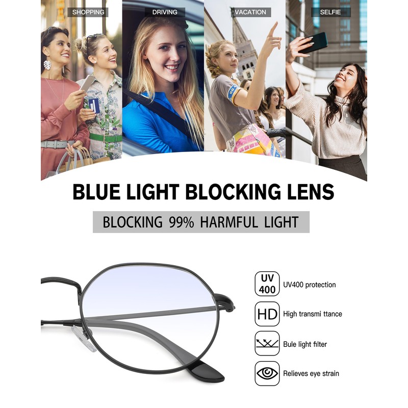 - Vintage Large Lens - With a classic round frame design, our lenses offer a vintage look that is perfect for any style. They also provide superior coverage of larger screen sizes so you can enjoy all the benefits of blue light protection no matter what device you are using.