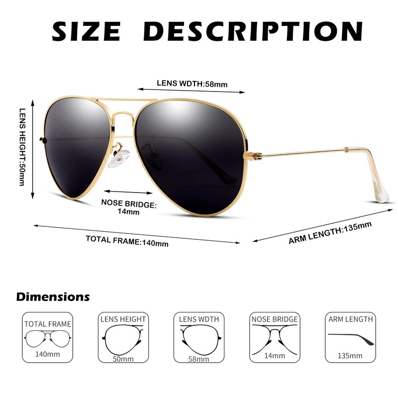 - PERFECT PARTNER – Classic Aviator Sunglasses, Suitable for Driving, Cycling, Fishing and Outdoor Activities.