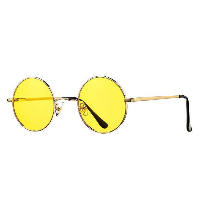 Pro Acme Retro Small Round Polarised Sunglasses for Men Women, Golden Frame |Yellow Lens