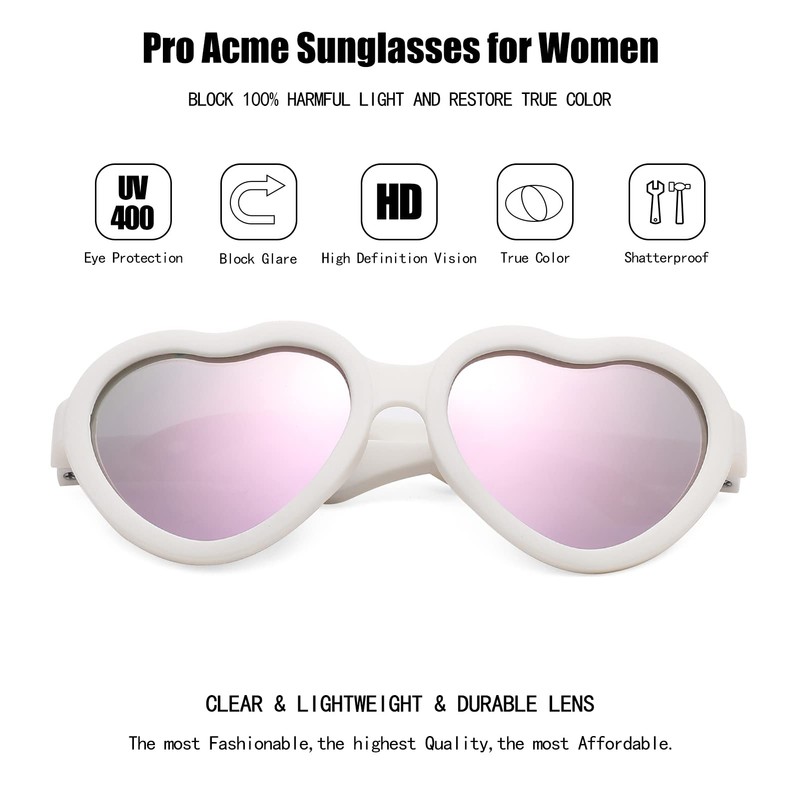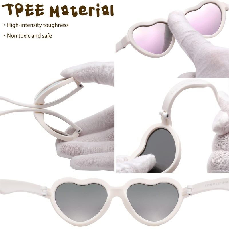 Pro Acme TPEE Unbreakable Heart-Shaped Baby Polarised Sunglasses with Strap Adjustable Toddler & Baby Age 0-24 Months, White Frame | Purple Mirrored Lens