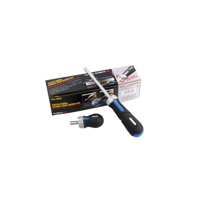 This set includes 2 versatile pistol gear and a stubby gear driver. Country of manufacture: Japan; Material: Chrome vanadium; Weight: 1.1 lbs (0.5 kg).