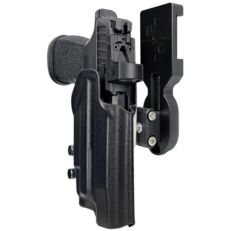 - Enhanced Compatibility: We understand the importance of versatility in the competitive shooting arena. That's why our Pro Ball Joint Competition Holster accommodates any optic, empowering you to pair your firearm with your preferred sighting system. Additionally, the tapered but open muzzle end accommodates threaded barrels, allowing for greater adaptability.