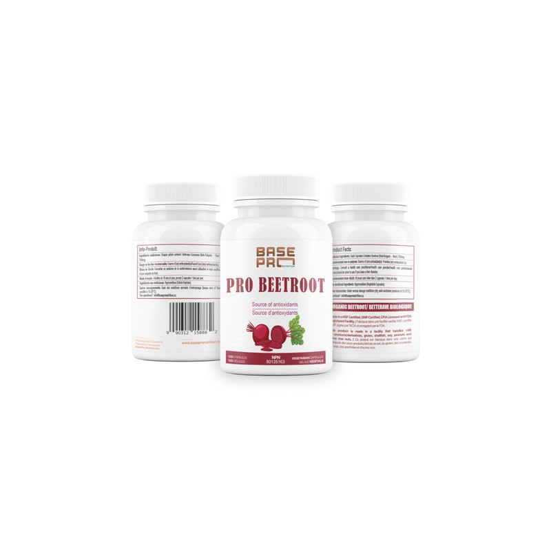 PRO Beetroot - 120 count | Organic Beetroot | Base Pro Nutrition | 120 Vegetarin Capsules | Organic Beetroot 1400mg per SERVING (700mg X 2 capsules) | Betterave Biologique | MADE IN CANADA | NEW