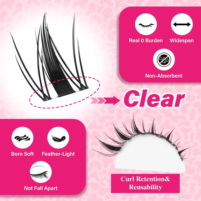 - Invisible Clear Band for Natural Look:The individual lash clusters feature a transparent invisible stem, which seamlessly blends with your natural lash line. This clear band is almost undetectable, creating a super natural look as if the lashes are growing right from your eyelids. It's perfect for achieving a natural yet glamorous look, suitable for both daily wear and special occasions.