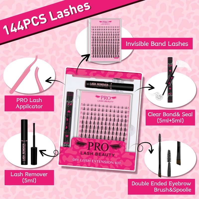 - All - in - One DIY Kit:This DIY Lash Clusters Kit comes with a whopping 144 pieces, making it a comprehensive set for all your lash extension needs. It includes everything from wispy natural individual clear band lashes to essential tools like lash bond, seal, lash applicator, and remover. Whether you're a beginner or a professional, this kit has got you covered, eliminating the need to purchase items separately.