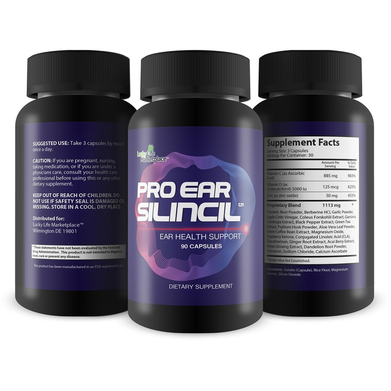 PRO EAR SILINCIL ear health support advanced hearing formula contains a carefully selected combination of premium hearing vitamins, minerals, herbs, and antioxidants to support optimal hearing. This hearing health support supplement contains a high dose of Vitamin D to help protect the tiny bones in your middle ear that can weaken and cause hearing loss. It also contains antioxidants to help prevent damage from free radicals and oxidative stress while supporting cell health in the inner ear. Our best ear health support supplement may also help relieve some of the underlying causes of poor hearing with the help of turmeric curcumin, vitamin c, zinc, magnesium, ginger, garlic, and ginseng which support reduced inflammation, improved circulation, and immune health.