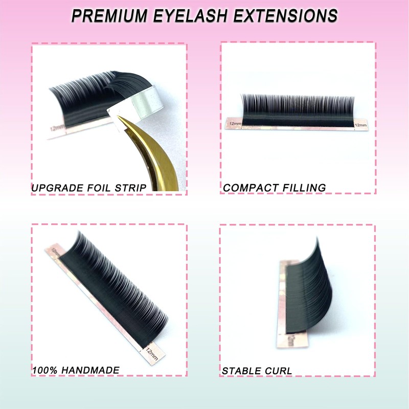 Our mission is to provide affordable, trusted products to lash artists around the world, and to achieve this mission, we've been committed to creating a wide range of innovative, safe and reliable lash products at affordable prices. Stable Curl: Curl and thickness stable up to 1 years. Foil Strips: No residues, easy to tear off. Improved Technology: Brown tape, quick to pick off. No Kink: Loose natural, all same length. More Thick: Even ends, denser roots.