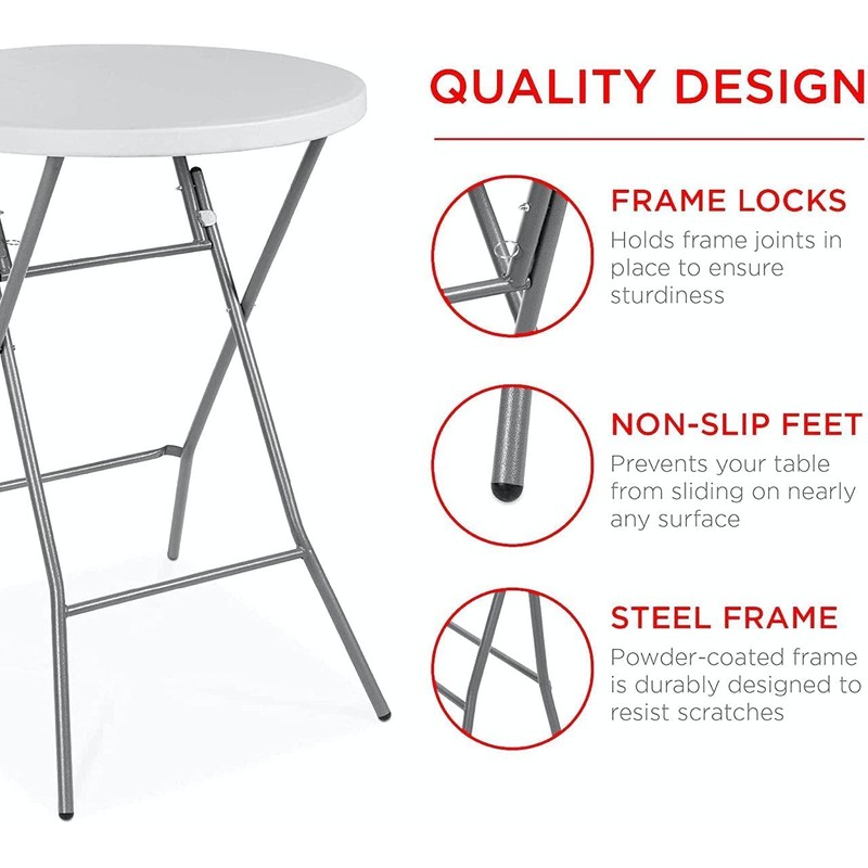 • PERFECT DESIGN: Create a social setting at your venue or holiday party around this cocktail tables for parties. The hightop table encourages partygoers to interact, add cocktails and snacks and you're all set for success. Product Measurements - Overall Size: 31.5"W x 31.5"D x 43.5"H. Standard bistro table sizing is able to be used in a wide variety of applications.