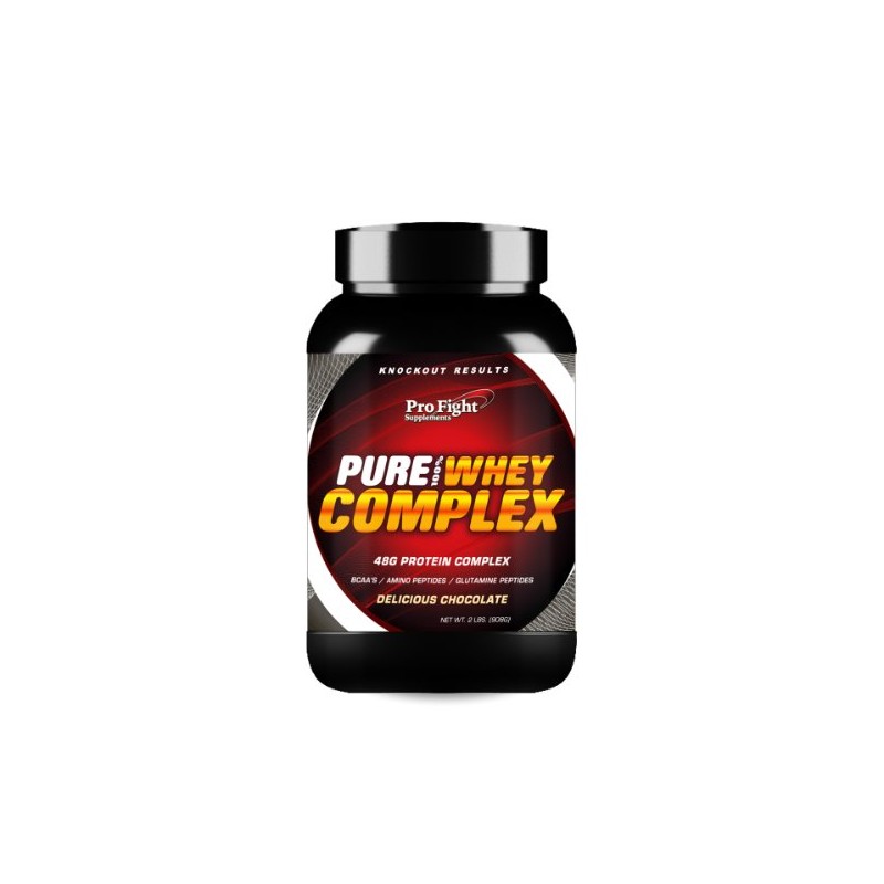 PRO FIGHT SUPPLEMENTS is proud to present our newest fighter, PURE 100% WHEY COMPLEX, a new and advanced protein blend. It is designed to help increase and maintain lean muscle mass, speed up muscle repair and recovery, support protein synthesis and help you feel stronger and healthier. Our scientifically formulated protein formula combines only the purest and highest quality ingredients. PURE 100% WHEY COMPLEX is formulated with Whey Protein Isolate, Whey Protein Concentrate, BCAA's, Glutamine and Glutamine Peptides. This formula delivers 48G of powerful micro-filtered pure Protein Complex to help you achieve KNOCKOUT RESULTS.