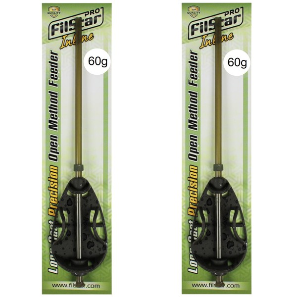 PRO FILSTAR Inline Long Cast Method Feeder Set 2 x 60g Feeder - Open Feeder - Carp Fishing Assembly - Carp Fishing Accessories - Carp Fishing - Ground Fishing - Fishing Accessories for Feeder Rod