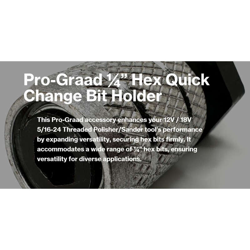 - [IN THE BOX]: 1 each Pro-Graad 1/4" Hex Shank Converter Quick Change Bit Holder Adapter for 12V/18V Cordless Polisher/Sander Tools which have internal 5/16-24 threads. Compatible for use on SPTA, WORKPRO, AC DELCO, DNA MOTORING, RYOBI and similar 12V or 18V 5/16"-24 internal threaded Polisher/Sander cordless tools.