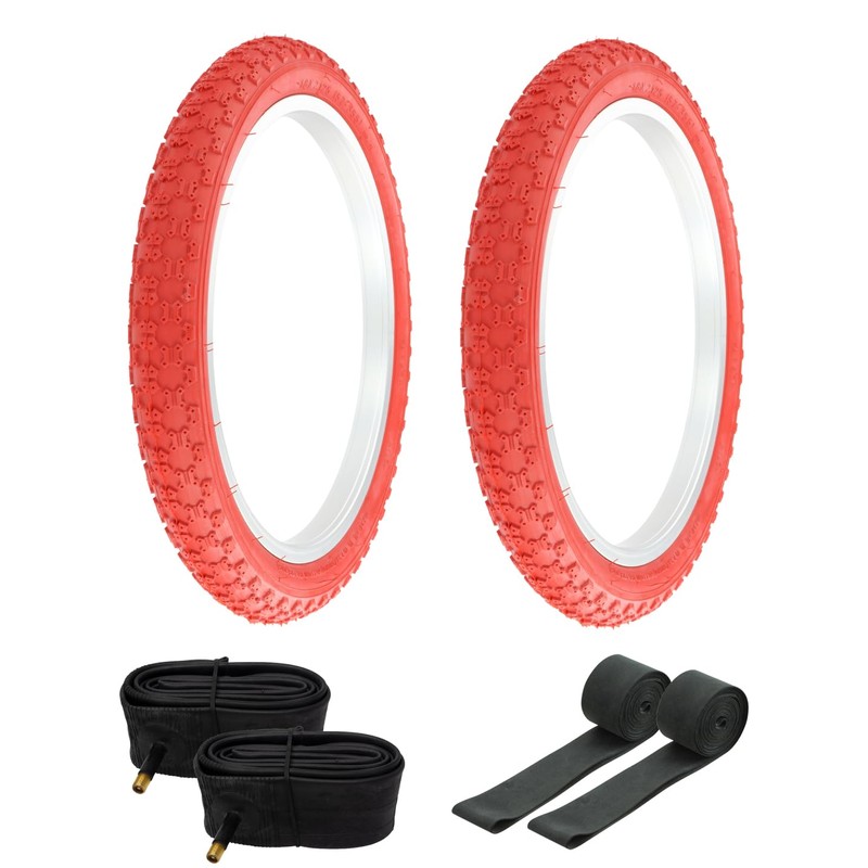 - The 18" x 2.125 All Red Comp III Tread tires are designed for maximum performance, with a versatile tread pattern that offers great grip on both pavement and light off-road surfaces. Whether you’re cruising down city streets or exploring dirt paths, these tires provide excellent stability and control for BMX and recreational bikes. - Reliable Tubes for Long-Lasting Use