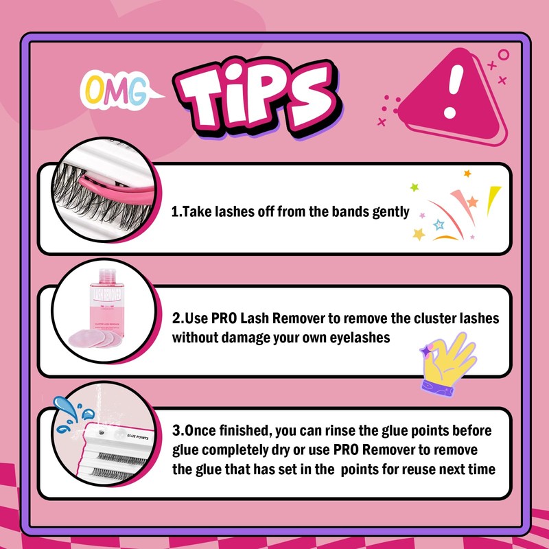 - Comforatable & Reusable: Our brand eyelash clusters have super thin band and they are very lightweight. Comfortable to wear the whole day and whole night. Individual cluster lashes can be reused up to 5 times if they are nice cared.