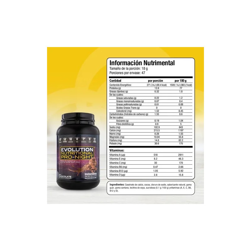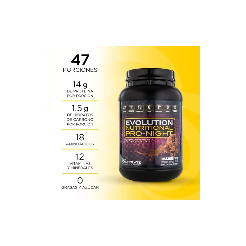 Pro-Night es una proteína de caseinato de calcio de lenta liberación y absorción de aminoácidos, por lo que brinda saciedad y previene la pérdida de masa muscular.
