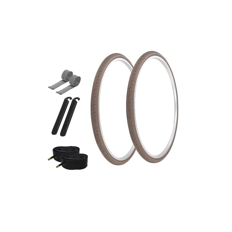 - 🚴♀️ All-in-One 8-Piece PRO+ Bicycle Tire Kit: Includes 2 Brown/Brown 700 x 32 tires, 2 standard tubes with 33mm Schrader valves, 2 rubber rim strips, and 2 nylon tire levers—everything you need for a complete tire overhaul. Designed for ease, value, and performance, this full set is ideal for home mechanics or serious riders upgrading or replacing components. 🧰