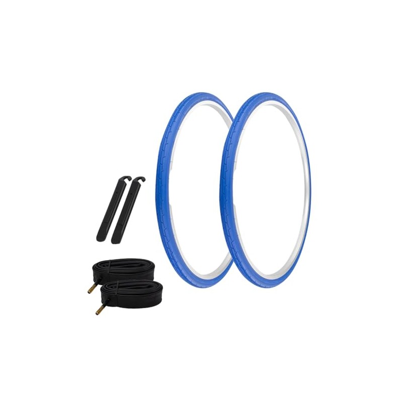 Riders looking for 700 bike tire and tube set Blue/Blue with reliable tools.