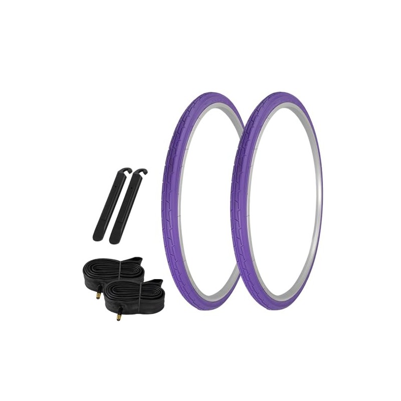 Get the complete package: 2 Purple/Purple tires, 2 tubes, and 2 tire levers for convenience and value.