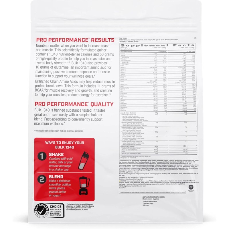Pro Performance Bulk 1340 Mass Gainer Protein Powder | 50g, 1340 Calories, Gl...