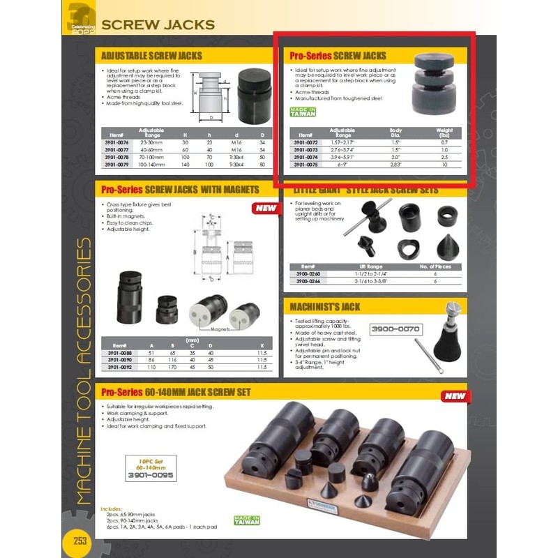 - Ideal for setup work where fine adjustment may be required to level work piece or as a replacement for a step block when using a clamp kit.