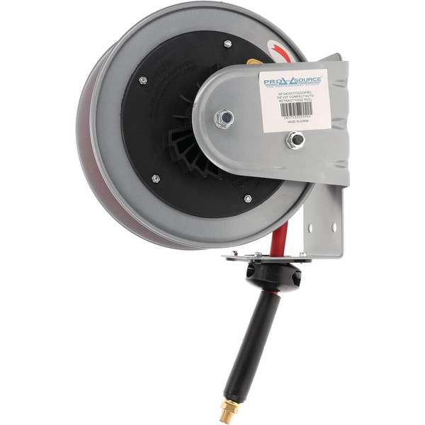 PRO SOURCE Compact Auto-Retractable Hose Reel with 3/8" ID x 20' Long Hose: 1/4" NPT Inlet & Outlet, 300 psi