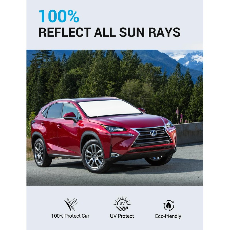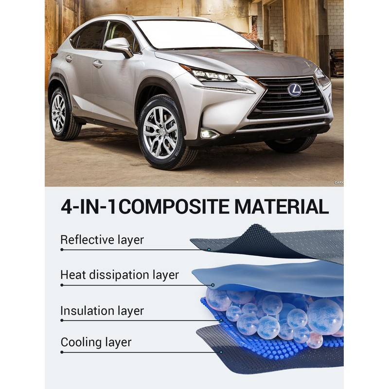 - Upgrades Design Sunshade: The windshield cab shade for Lexus NX boasts a double layer of heat shield fabric to keep out the sun. The first layer is premium 210T reflective polyester and the second layer is high-quality fabric. Double insulation, and double protection. The best shade and insulation on the market