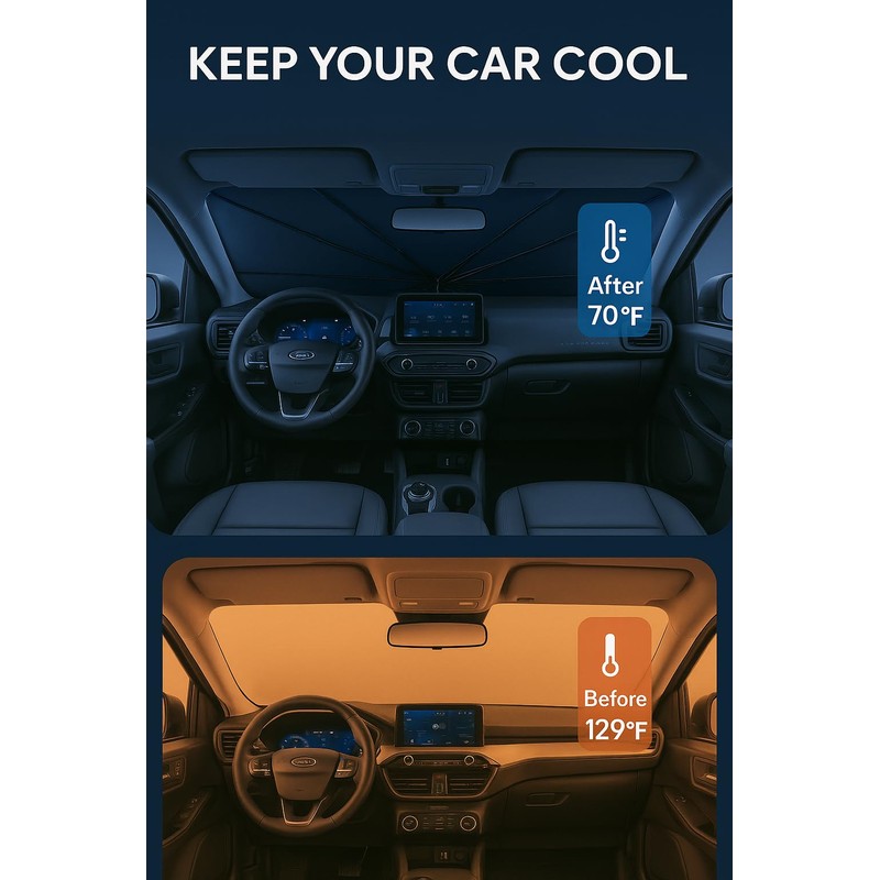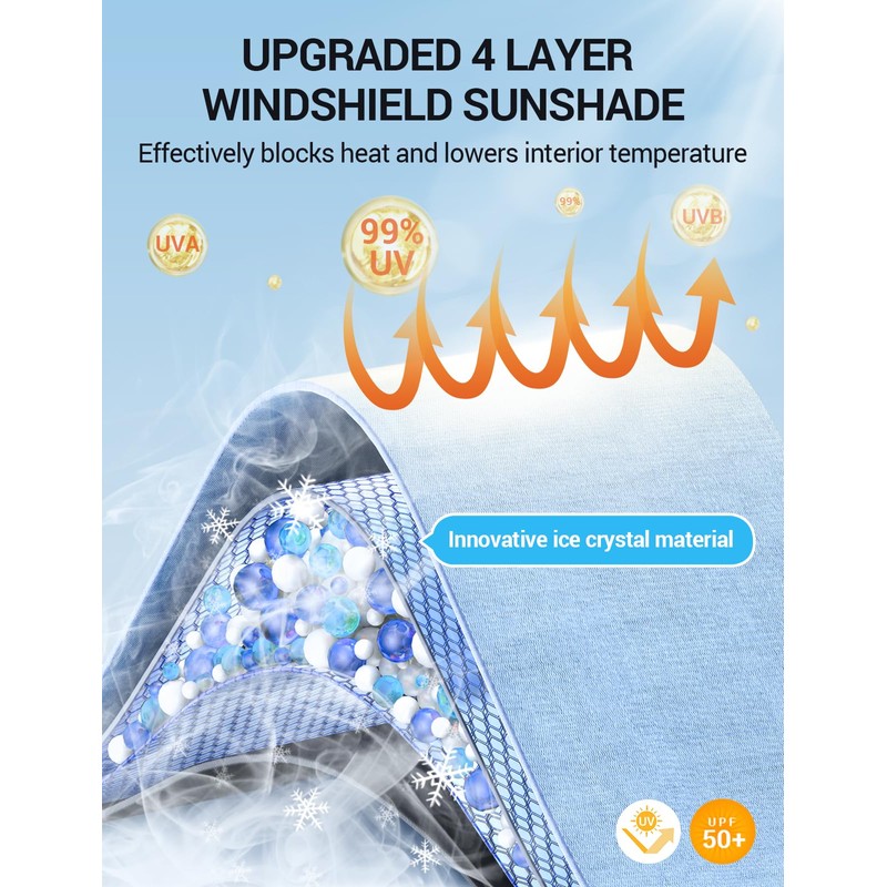 - Innovative 4-Layer Design: The sunshade adopts a 4-layer design, which is thick enough to effectively block and reflect sunlight. After multiple uses, it is still strong and not easy to tear. The sunshade adopts innovative design to evenly distribute heat, quickly cool down, and keep your car cool all the time. You no longer have to worry about getting your seat or car handle scalded by high temperatures.