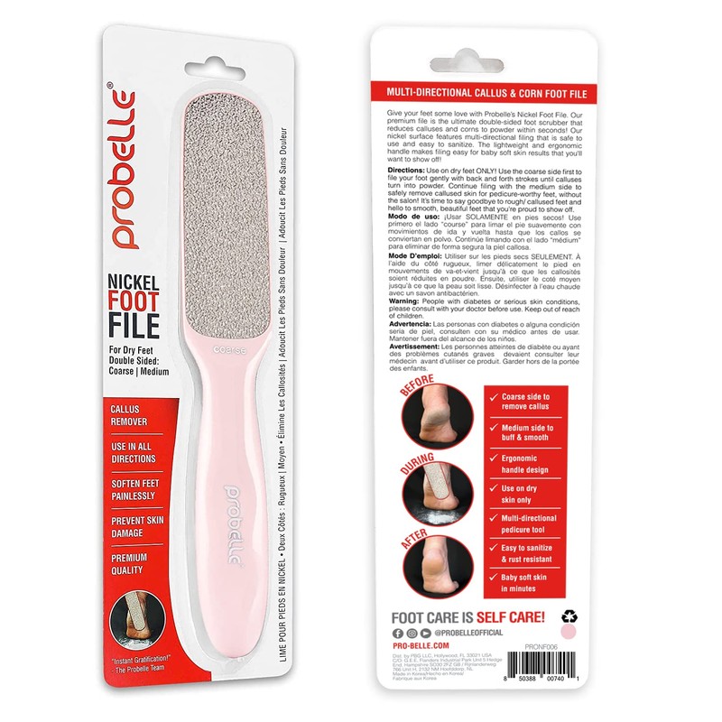 Probelle Probelle Double Sided Multidirectional Nickel Foot File Callus Remover - Immediately Reduces calluses and Corns to Powder for Instant Results, Safe Tool (Pink)