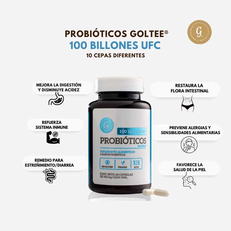 - Probióticos 100 billones, desaarrolaldos con lso ingredientes más puros