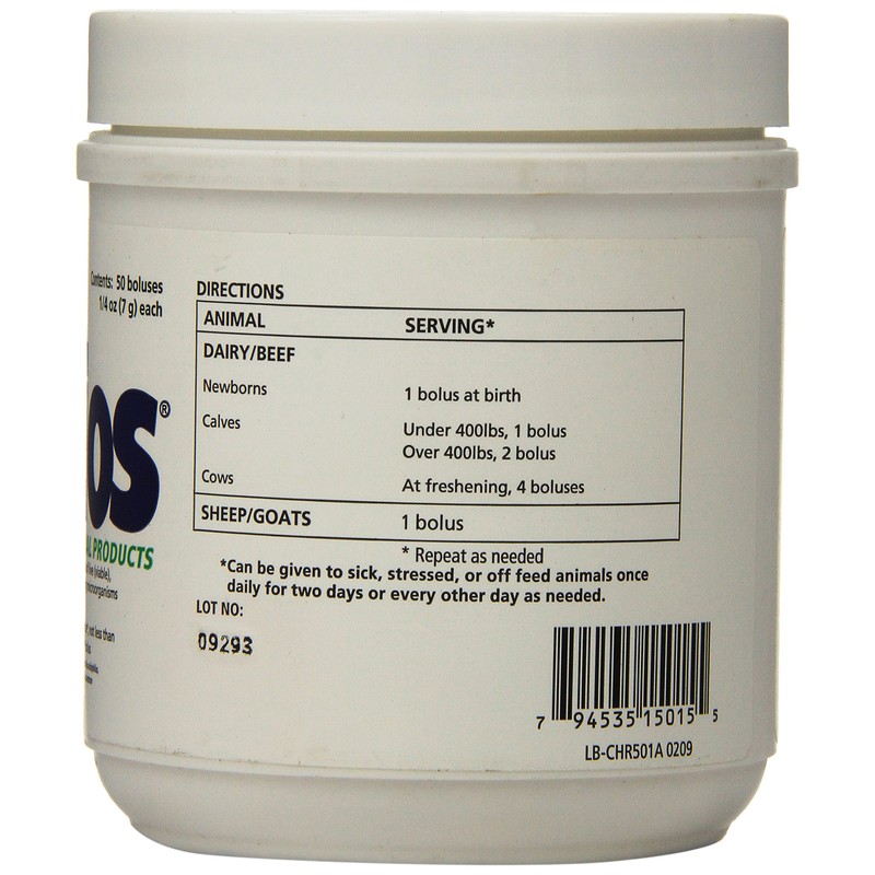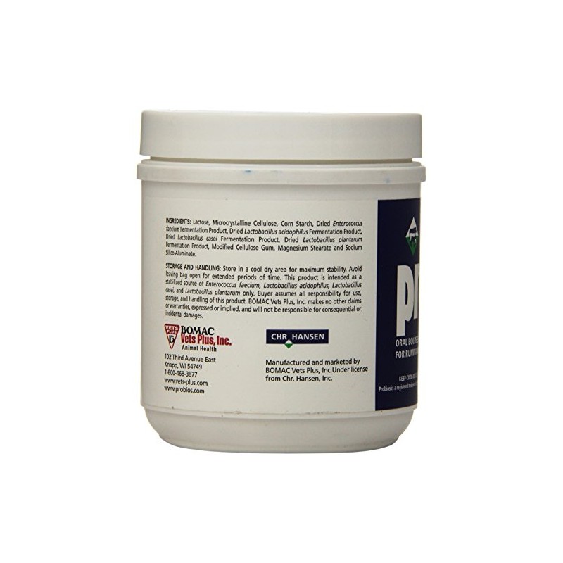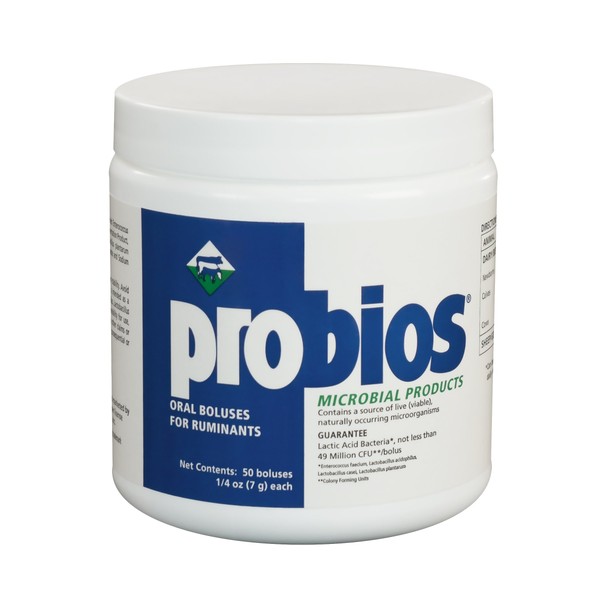 Probios Oral Boluses for Ruminants and acrid; and cent; are a stabilized source of lactic acid bacteria. Provide to any ruminant including beef cows, dairy cows, sheep and goats at times of stress, such as ration change, birth, weaning, shipping, weather changes and following antibiotic treatment. Lactic acid bacteria supports normal appetite and digestion. Benefits Probios Oral Boluses for Ruminants are a source of stabilized live direct fed microbial. Since one direct fed microbial alone cannot provide all the required health benefits, it contains four species of live naturally occurring lactic acid bacteria including three species of Lactobacillus (acidophilus, plantarum, case) along with Enterococcus francium. Probios Oral Boluses for Ruminants features the unique microbial Probios strains for unrivaled benefits and helps maintain proper gut flora in the digestive tract. Probios Oral Boluses for Ruminants helps support proper digestion and bowel health in all classes of ruminants in a convenient bolus. How it works Since one direct fed microbial alone cannot provide all the required health benefits, Probios Oral Boluses for Ruminants contains four species of live naturally occurring lactic acid bacteria including three species of Lactobacillus (acidophilus, plantarum, case) along with Enterococcus francium. Live Lactobacillus acidophilus, Lactobacillus plantarum, Lactobacillus case and Enterococcus francium all ferment lactose into lactic acid. As direct fed microbial, they promote breakdown and assimilation of nutrients while helping to maintain proper gut flora.