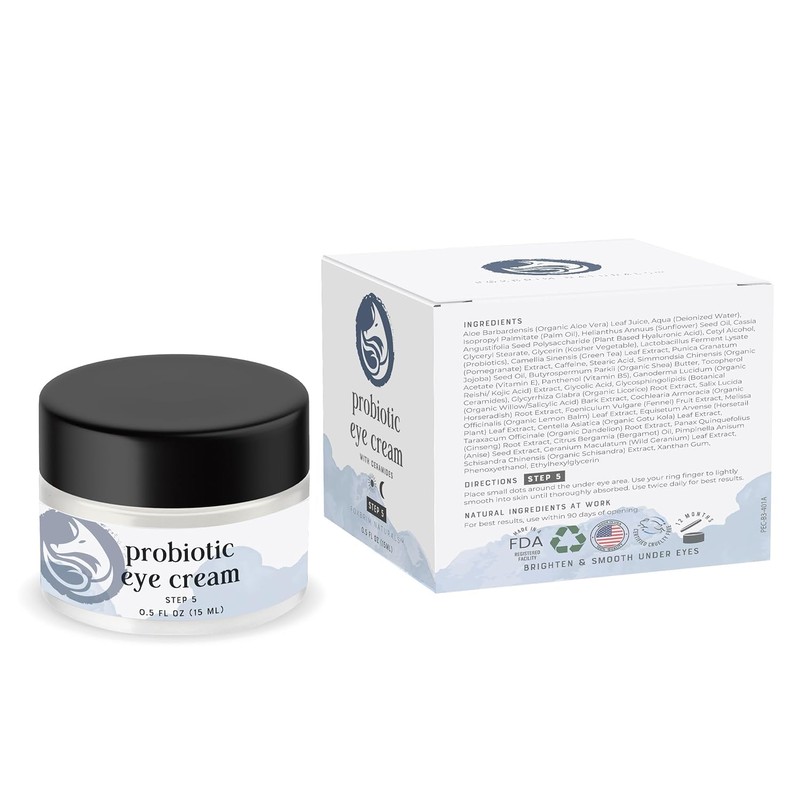 Probiotic Eye Cream with Caffeine for Dark Circles, Puffiness & Wrinkles - Luxury 28-Botanical Formula with Ceramides - Targets Under Eye Bags, Fine Lines & Crow's Feet - USA Made 0.5oz