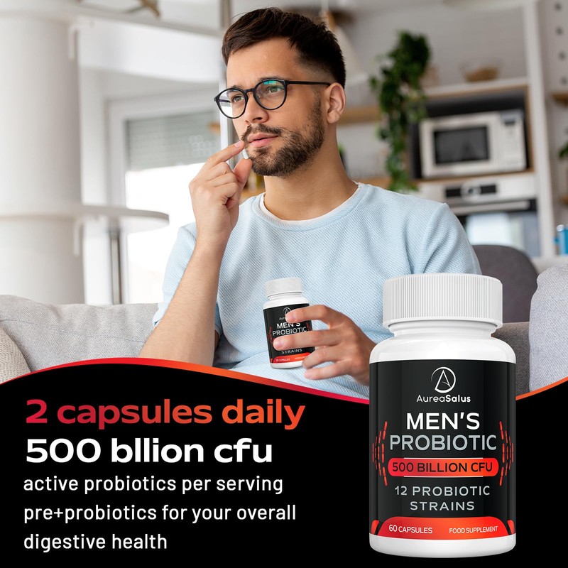 - UNIQUE PROBIOTICS FOR MEN: Aureasalus men's probiotics feature 500 billion CFUs and 12 strains, it plays a crucial role in overall gut health. By work with the body's natural gut flora, ensure the live strains are safely transported to the gut for optimal absorption.They also inhibit the overgrowth of harmful intestinal bacteria, enhancing gut health